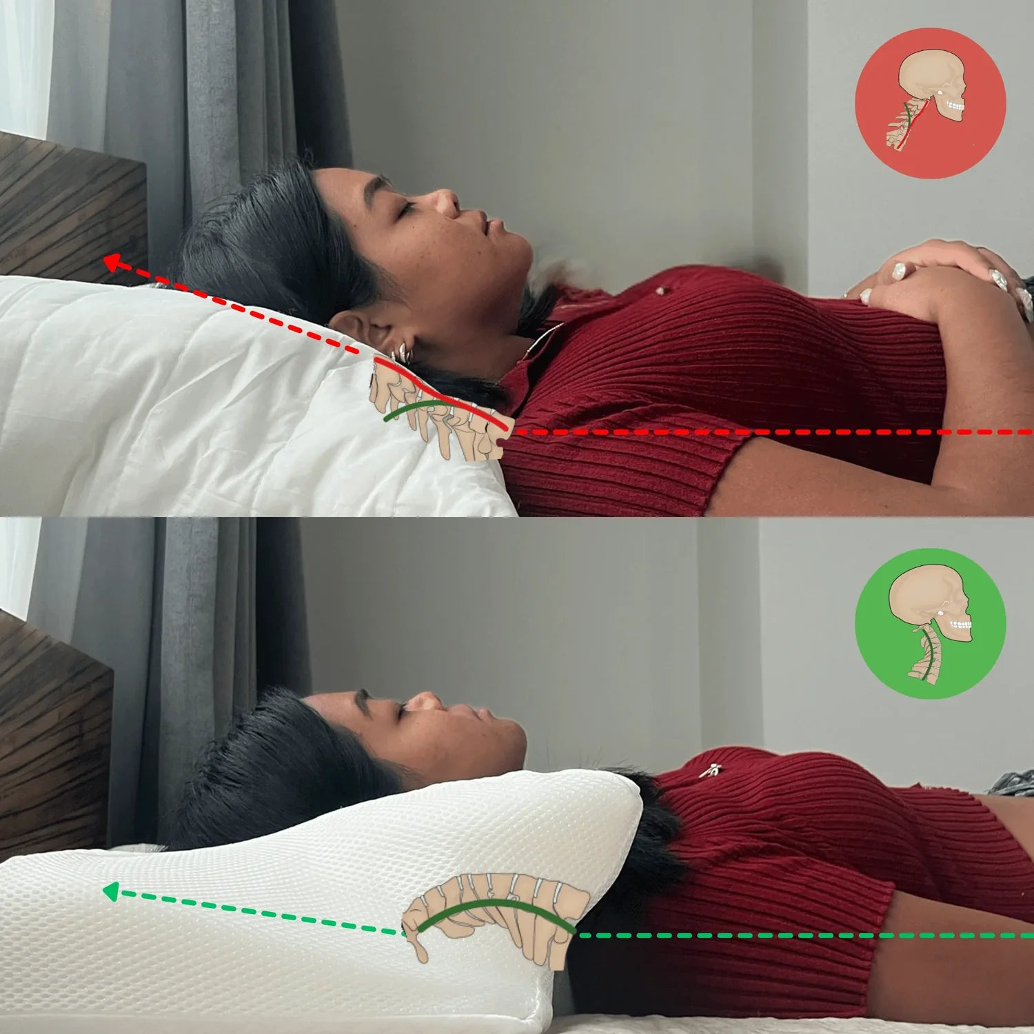 Traditional pillows flatten the neck, causing long-term misalignment and pain.
